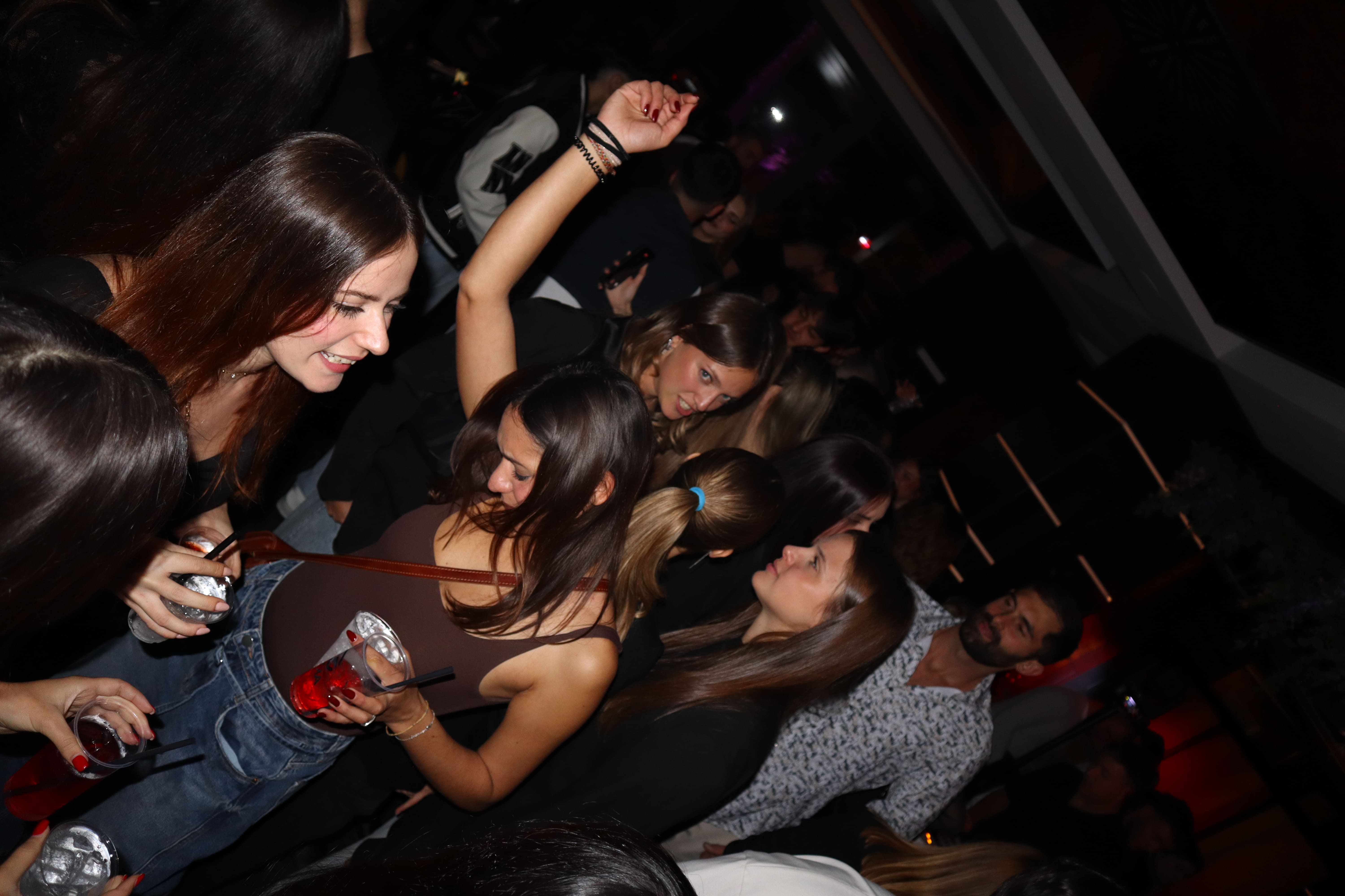 Da 00:30 inizia il dj set, i tavoli al centro della sala vengono tolti, escono flotte di shottini per tutti quanti e si da il via alla serata